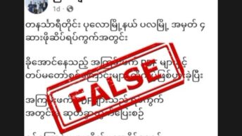 တယ်လီဂရမ်တွင် ပျံ့နှံ့နေသော သတင်းအကြောင်းအရာနှင့်ပတ်သက်၍ Myanmar Fact-Checking Network ၏ အဖွဲ့ဝင်ဖြစ်သော Delta News Agency နှင့် Myanmar Pressphoto Agency (MPA) တို့ ပူးပေါင်း၍ အချက်အလက် စစ်ဆေးကြည့်ရာ သတင်းအမှားဖြစ်ကြောင်း စိစစ်ဖော်ထုတ်နိုင်သည်။