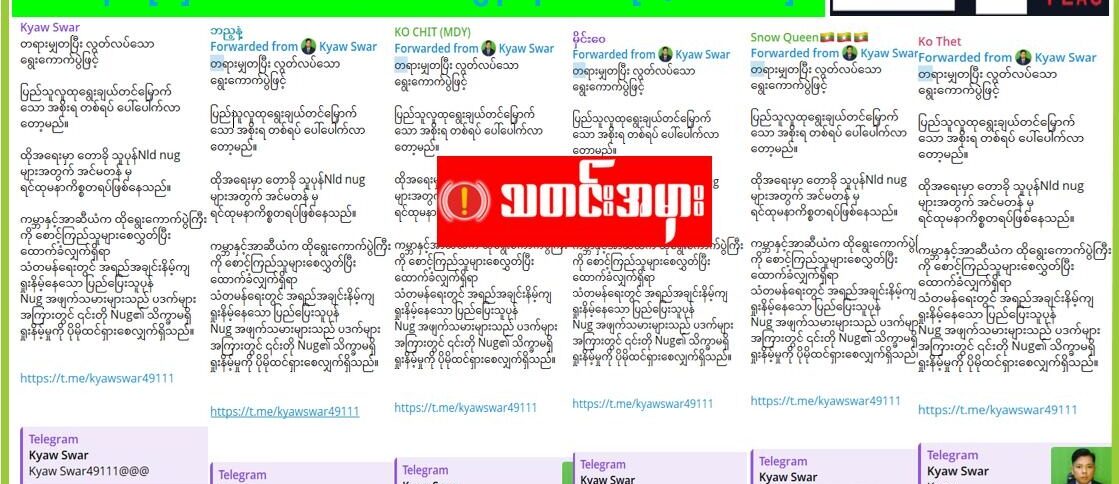 စစ်ကောင်စီလော်ဘီ တယ်လီဂရမ်ချန်နယ်တခုဖြစ်တဲ့ Kyaw Swar ကနေ” တရားမျှတပြီး လွတ်လပ်သော