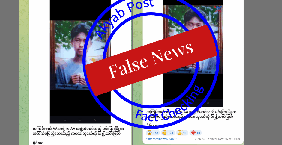 ဖြန့်ဝေထားတဲ့အကြောင်းအရာမှာပါတဲ့ ပုံကို Google မှာရှာဖွေကြည့်လိုက်တဲ့အခါမှာတော့ Western News သတင်းမီဒီယာကနေ နိုဝင်ဘာလ ၂၆ ရက်နေ့မှာ “မင်းပြားကျောင်းသား မီးလောင်သေဆုံးမှုကိစ္စ AA က ရဲစခန်းမှူး အပြောင်းအလဲလုပ် စစ်ဆေးနေ” ဆိုတဲ့ သတင်းမှာပါရှိတဲ့ ပုံနဲ့ ကိုက်ညီနေတာကို တွေ့ရပါတယ်။
