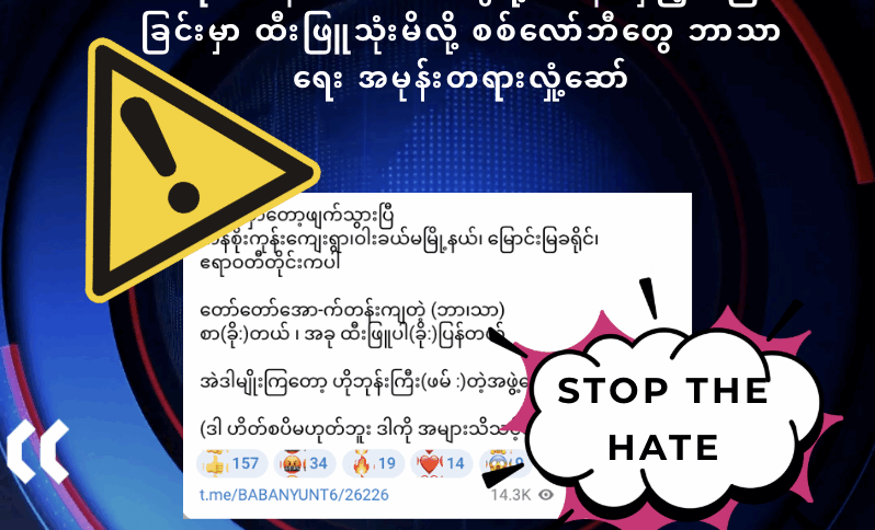 ဒါကြောင့် လူမှုကွန်ရက်ပေါ်မှာတွေ့တိုင်း အမှန်တကယ်မခံယူဘဲ တကယ် လုပ်ဆောင်နေတဲ့ ဖြစ်စဉ်ကို လေ့လာစောင့်ကြည့်ဖို့လိုအပ်ပါတယ်။ အခုချိန်မှာ စစ်ကော်မရင် ဝါဒဖြန့် ချန်နယ်တွေက ၎င်းတို့ အာဏာတည်မြဲဖို့ အတွက် ပဋိပက္ခဖြစ်စေနိုင်မယ့် လူမျိုးရေး ဘာသာရေး အမုန်းတရားတွေကို ကိစ္စသေးသေး လေးကနေစပြီးလှုံဆော်နေတာမျိုးတွေလည်းရှိပါ။ ထိုအတွက်ကြောင့် ကိုယ်ကိုယ်တိုင် အမုန်းတရားဖြန့်ပွားသူမဖြစ်ဖို့ အရေးကြီးပါတယ်။
