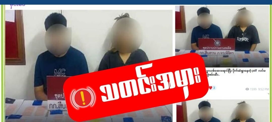 “သင်္ကြန်လည်ရန်အတွက် မူးယစ်ဆေးရောင်ပြီး ပိုက်ဆံရှာနေတဲ့ pdf  လင်မယားနှစ်ဦးကို ထိုင်းရဲတပ်ဖွဲ ဖမ်းဆီး..”လို့(မူရင်းအရေးအသားအတိုင်း) ရေးသားထားပြီး ဓါတ်ပုံ ၁ ပုံနဲ့အတူ ဖြန့်ဝေမှုကို ၂၀၂၆ ခုနှစ်၊ ဧပြီ  ၈ ရက်မှာ စစ်တပ်လော်ဘီ မှိုင်းဝေ တယ်လီဂရန်ချန်နယ်ကနေ  စတင်ဖြန့်ဝေခဲ့တာကို တွေ့ရပါတယ်။