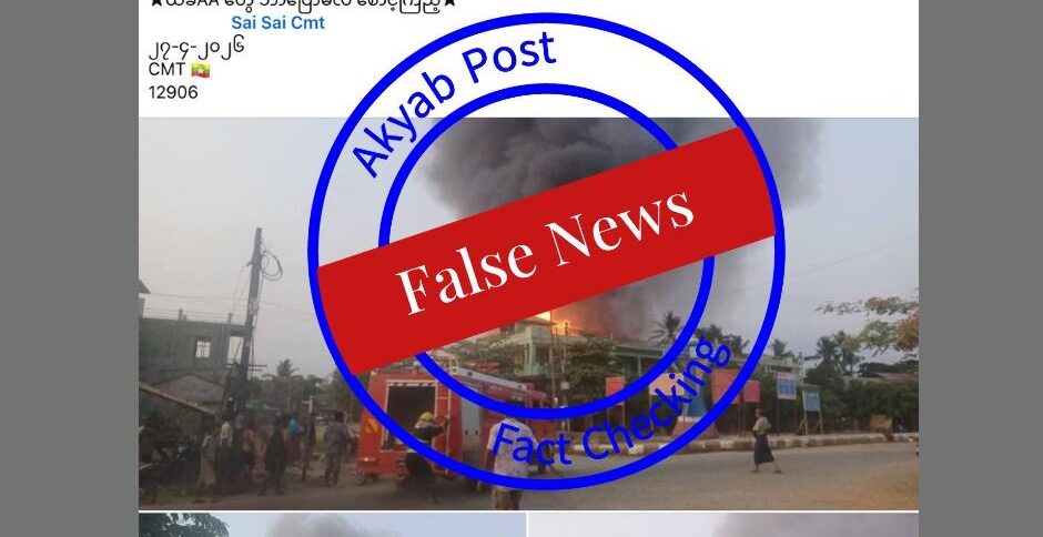 ဆိုရှယ်မီဒီယာမှာ ပျံ့နှံ့နေတဲ့ ပို့စ်ကို MFCN အဖွဲ့ဝင်ဖြစ်တဲ့ Akyab Post နဲ့ DNA ကနေ စစ်ကြည့်လိုက်တဲ့ အခါမှာ အေအေ က မီးရှို့တယ်ဆိုတာဟာ လုပ်ကြံရေးသားထားတဲ့ သတင်းတုသတင်းမှား ဖြစ်နေတာကို တွေ့ရပါတယ်။