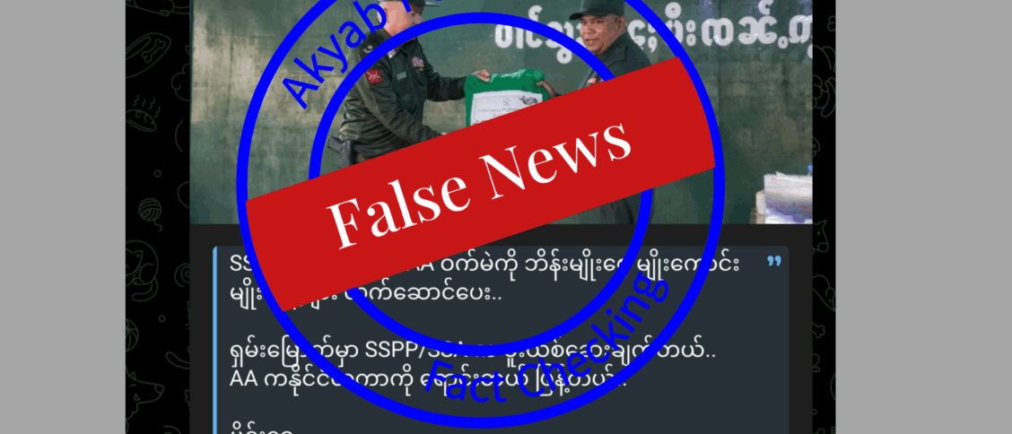 စစ်ကောင်စီဝါဒဖြန့်ချန်နယ်တွေမှာ ပျံ့နှံ့နေတဲ့ အကြောင်းအရာကို MFCN အဖွဲ့ဝင်ဖြစ်တဲ့ Akyab Post ကနေ စစ်ဆေးကြည့်လိုက်တဲ့အခါမှာ ပုံအဟောင်းကိုသုံးပြီးတော့ သတင်းတုသတင်းမှားဖြန့်ခဲ့တာကို တွေ့ရပါတယ်။
