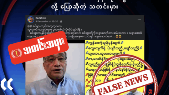 ဒေါက်တာဇော်ဝေစိုးပုံကို AI အသုံးပြုပြီး ဒေါက်တာဆာဆာအား တော်လှန်ရေးသစ္စာဖောက်လို့ ပြောဆိုတဲ့ သတင်းမှား ၂၀၂၅ခုနှစ်၊ ဒီဇင်ဘာလ၊ ၅ရက်။ (Fact-check _DNA/ The Red Flag) အနှစ်ချုပ် “ဒေါက်တာဆာဆာက NUGကိုသစ္စာဖောက်ပြီး ငြိမ်းချင်းရေးနဲ့...