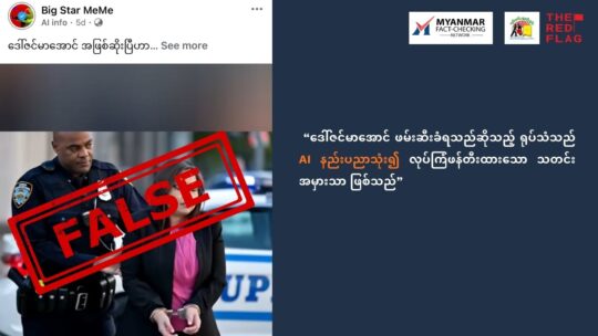 ၂၀၂၆ မတ်လ ၉ ရက် (Fact-check / သျှမ်းသံတော်ဆင့်၊ The Red Flag) လူမှုကွန်ရက်စာမျက်နှာများတွင် NUG နိုင်ငံခြားရေးဝန်ကြီး ဒေါ်ဇင်မာအောင် ဖမ်းဆီးခံလိုက်ရပြီဟုဆိုကာ ရုပ်သံဗီဒီယိုတစ်ခု ပျံ့နှံ့နေသည်။ အဆိုပါရုပ်သံကို “Big Star MeMe” အမည်ရှိ...