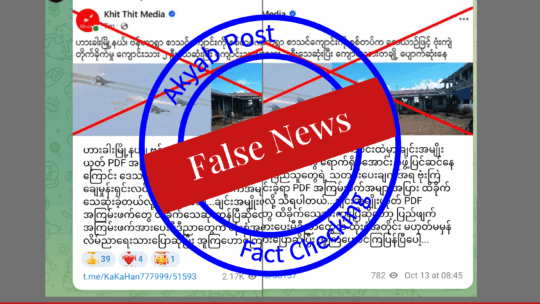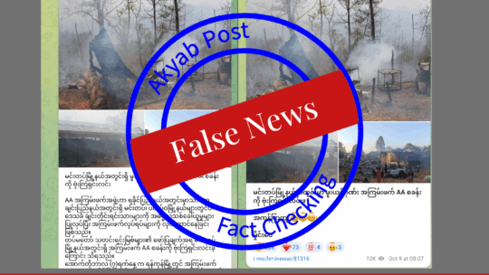 ကယားတော်လှန်ရေးရဲဘော်များမှ ပအိုဝ်းဒေသမှ ပြည်သူပိုင်နေအိမ်များကို မီးရှို့ဆိုကာ သတင်းမှားဖြန့် Akyab Post/ MPA/ The Red Flag Fact -check 16 Oct 2025 အခုရက်ပိုင်း တယ်လီဂရန်က စစ်ကောင်စီဝါဒဖြန့်ချန်နယ်တွေမှာ ကယားတော်လှန်ရေးရဲဘော်တွေကနေ...