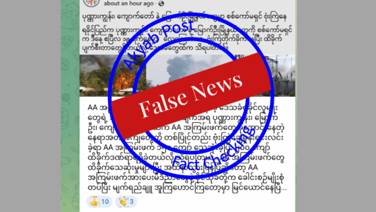Akyab Post/ MFCN 3 Apr 2026 စစ်ကောင်စီဝါဒဖြန့်ချန်နယ်တွေမှာ ရခိုင်ပြည် သံတွဲမြို့ရှိ အေအေတပ်သားတွေနေထိုင်တဲ့ စခန်းကို စစ်ကောင်စီ က လေကြောင်းကနေ တိုက်ခိုက်ခဲ့တယ်ဆိုပြီး ရေးသားထားတဲ့ ပို့စ်တွေဟာ ပျံ့နှံ့လျက်ရှိပါတယ်။ တယ်လီဂရန်မှာ...