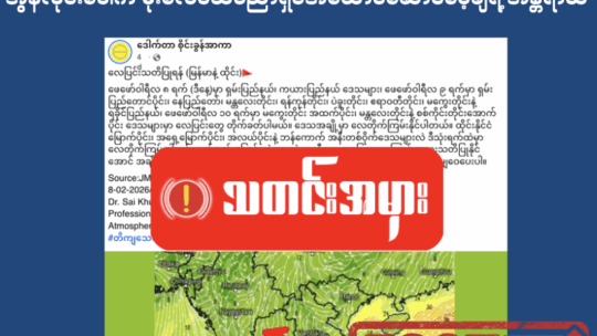 အွန်လိုင်းပေါ်က မိုးလေဝသပညာရှင်အယောင်ဆောင်ပေ့ချ်ရဲ့ အန္တရာယ်    ၂၀၂၆ ဖေဖော်ဝါရီ ၁၆ (FactCheck_DNA)   မိုးလေဝသ သတင်းတွေ သဘာဝဘေးအန္တရာယ်တွေ နဲ့ပတ်သက်ပြီး လူမှုကွန်ရက်တွေပေါ်မှာ လူထုကို စိုးရိမ်ထိတ်လန့်မှုတွေ ဖြစ်စေနိုင်တဲ့ပို့စ်တွေ...