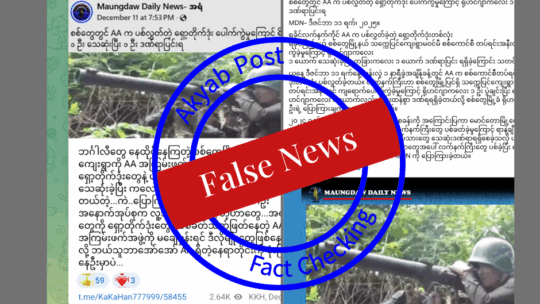Akyab Post/ MFCN Fact Check 19 Jun 2025 ရခိုင်ပြည်၊ ကျောက်ဖြူမြို့နယ်တိုက်ပွဲတွေမှာ စစ်ကောင်စီရဲ့ တပ်သားတွေ လက်နက်ချတယ်ဆိုတာ သတင်းမီဒီယာဌာနတွေကနေ မဟုတ်မမှန်စွပ်စွဲပြီးတော့ သတင်းမှားဖြန့်နေတာသာ ဖြစ်တယ်ဆိုပြီးတော့ ရေးသားထားတဲ့ ပို့စ်ဟာ...