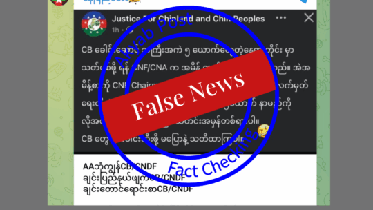 ၂၀၂၅ နိုဝင်ဘာ ၂၇ Fact-check MFCN/Akyab Post/ The Red Flag အခုရက်ပိုင်း စစ်ကောင်စီဝါဒဖြန့်ချန်နယ်တွေမှာ ချင်းညီနောင်အဖွဲ့ CB (Chin Brotherhood) ရဲ့ ထိပ်တန်းခေါင်းဆောင်များကို လုပ်ကြံသတ်ဖြတ်ဖို့ ချင်းအမျိုးသားတပ်ဦး/ ချင်းအမျိုးသားတပ်မတော် CNF/CNA ကနေ...