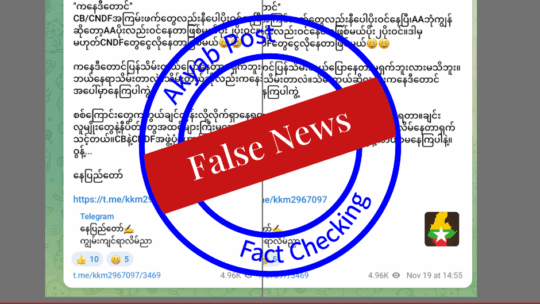24 Nov 2025 Fact-check MFCN/ Akyab Post/ The Red Flag အခုရက်ပိုင်း စစ်ကောင်စီဝါဒဖြန့် ချန်နယ်တွေမှာ ချင်းပြည်နယ်၊ တီးတိန်မြို့နယ်မှာရှိတဲ့ ကနေဒီတောင်ကို ချင်းတော်လှန်ရေးတပ်ဖွဲ့ဖြစ်တဲ့ ချင်းညီနောင်တပ်ဖွဲ့တွေကနေ သိမ်းပိုက်ထားတာဟာ ပုံဟောင်းနဲ့...