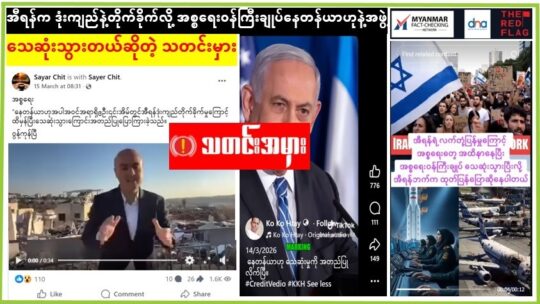 အီရန်ကဒုံးကျည်နဲ့တိုက်ခိုက်လို့ အစ္စရေးဝန်ကြီးချုပ်ဘင်ဂျမင်နေတန်ယာဟုနဲ့အဖွဲ့ သေဆုံးသွားတယ်ဆိုတဲ့ သတင်းမှား ၂၀၂၆ ခုနှစ်၊ မတ်လ ၁၈ ရက် (Factcheck/ DNA / The Red Flag) ☑️အနှစ်ချုပ် အီရန်ရဲ့ ဒုံးကျည်နဲ့တိုက်ခိုက်မှုတွေကြောင့်...